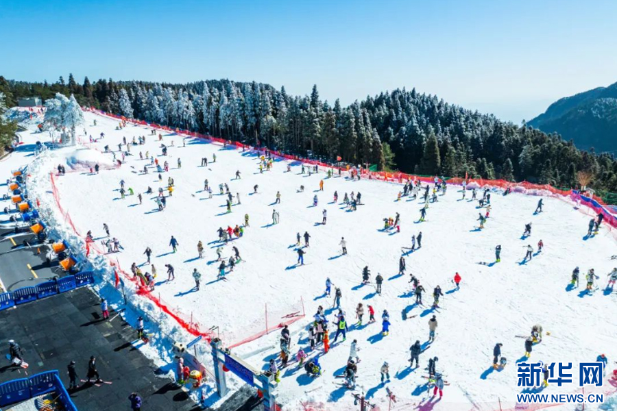 明月山冰雪体验中心游人如织。新华网发