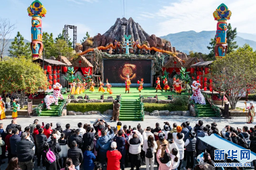明月千古情景区新春民俗活动现场,人潮涌动。新华网发