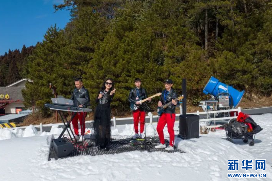 明月山冰雪体验中心邀请乐队现场表演。新华网发