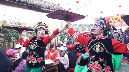 当地彝族民间办宴席上菜时