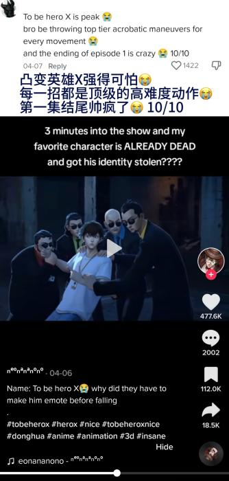 海外有动画粉丝评价,“作品2D和3DCG的独特融合令人叹为观止”“《凸变英雄X》是中国动画首次真正意义上的尝试,将在全球动画市场占领一席之地”“我相信它会跟《双城之战》或《蜘蛛侠:平行宇宙》一样好”。