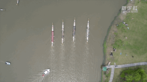 一艘艘龙舟如蛟龙出海,踏浪前行