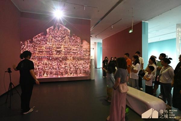 观众体验“像外之境·蓝田水陆庵彩塑艺术影像展”中的互动装置。受访团队供图