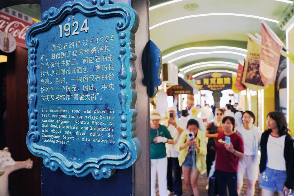 人们在哈尔滨中央大街肖克庭院景点参观游览(7月30日摄)。新华社记者 王松 摄