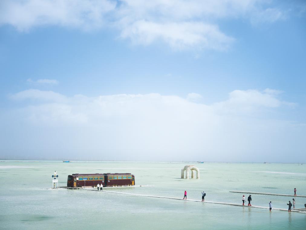戴上墨镜,开上越野车,戈壁里的旷野美景让游客流连忘返,“盐湖城”也有“文艺范”。