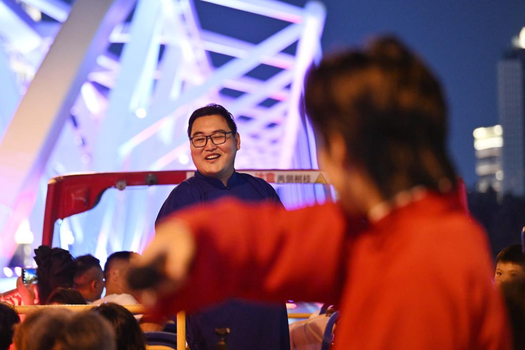 “相声巴士”的定制化夜间游览线路,将古文化街、鼓楼、意式风情区、解放桥、天津站世纪钟、津湾广场、望海楼、“天津之眼”摩天轮等20余处地标景点串联成线。演员在途中结合景点进行讲解,让观众除了能享受海河两岸夜景和沉浸式津味相声外,还能深入了解天津历史,品味天津特色文化。