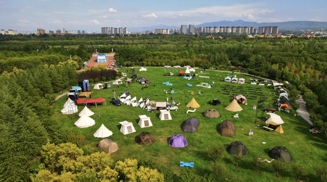 秋日的伊水游园求是段,一场名为“洛YOUNG”的城市露营季正在举行。河洛大鼓的悠扬唱腔与吉他弹唱交织,绒花、剪纸等非遗摊位旁是手冲咖啡体验区。