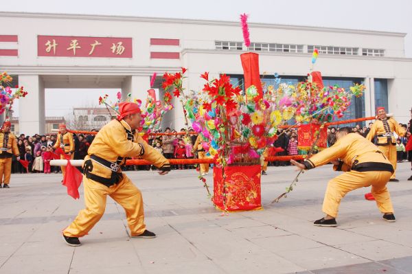 近日,在德州市2023年民间文艺(非遗)展演上,武城县选送的抬花杠荣获一等奖。