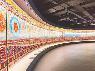 此后,《彩绘大观》多次在国内外展览。青海藏医药文化博物馆建设完成后,将它陈列在北馆中。蜿蜒曲折的展线增添了观展的趣味性,让人感觉仿佛溯游于历史长河。