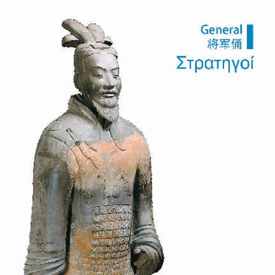 第一个展厅介绍了兵马俑。展览多次将希腊历史作为参照系并列地来描述兵马俑时代。例如,在介绍秦始皇时,提及同时期的希腊正处于“亚历山大大帝的继承者们在希腊、亚洲和埃及建立王国的时期”;在描述秦始皇帝陵的修建过程时,将修陵人数与修建埃及胡夫金字塔的人数作对比。这种类比将抽象、遥远的历史和文明化为具体细节,便于观众理解这段中国重要的历史过程。
