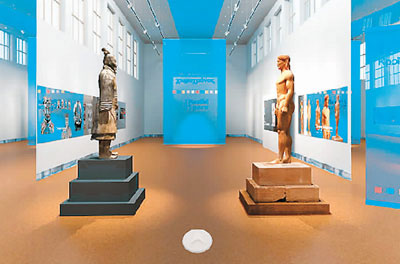 在最终的展览场景中,观众可以同时看到中国的兵马俑与希腊的克罗伊索斯青年雕像面对面伫立,在希腊国家考古博物馆第13号展厅内进行着一场“仿佛真实存在的”虚拟场面。