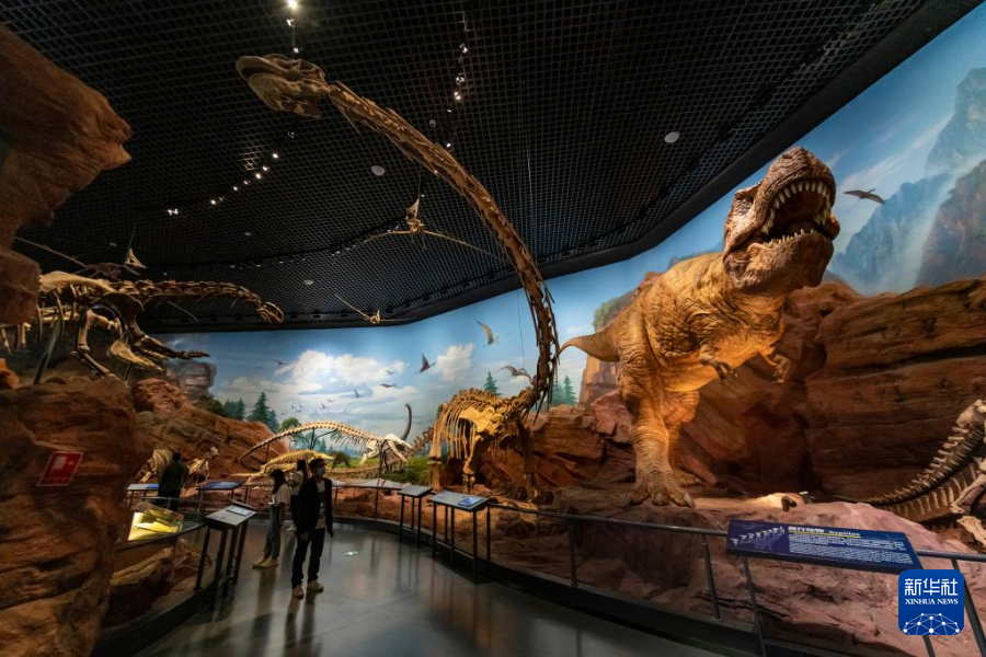 10月13日,游客在澄江化石地世界自然遗产博物馆参观动物标本。新华社记者 陈欣波 摄