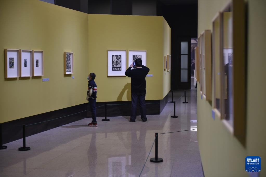 10月31日,观众在中国美术馆参观展出作品。当日,由中国美术馆、天津美术学院共同主办的“中国美术馆学术邀请系列展:一杆铁笔刻诗魂——王麦杆艺术展”开幕式在北京中国美术馆举行,共展出版画、素描、水彩等作品300余幅,历史文献等100余件。新华社记者 鲁鹏 摄