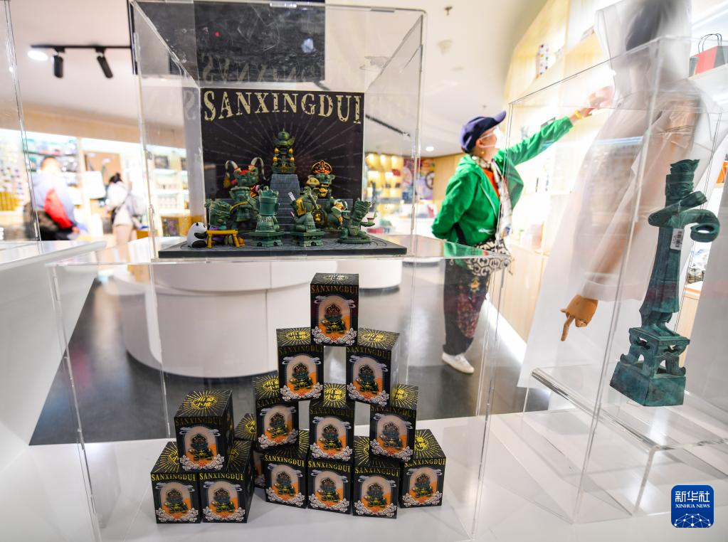 近年,三星堆遗址重要考古发现成果陆续公布,带动三星堆博物馆的文创产品设计销售热潮,一些文创产品取材于发掘出土的金面罩、青铜器等文物,受到人们的欢迎。