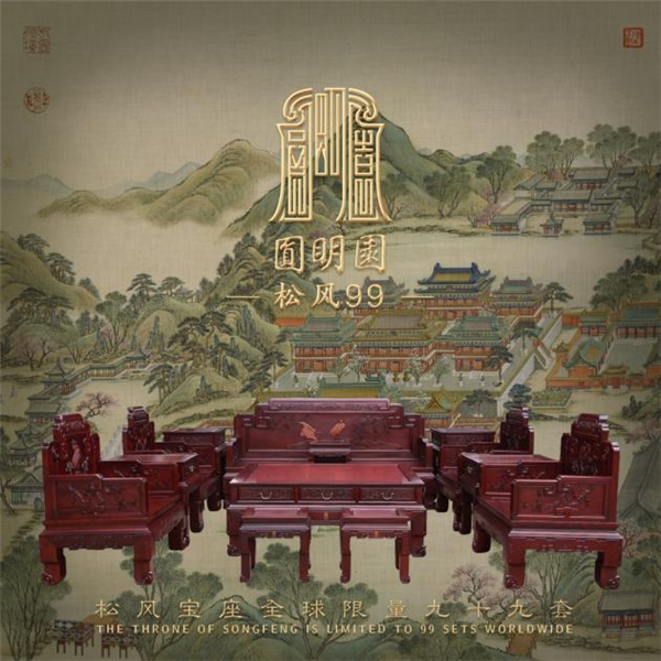 宝座的创作及制作涉及多个层面,尤其在基础选材上十分重要。多年来,陈玉树足迹遍及世界,不遗余力地寻找相配的木材。他深谙木材的纹理、油性、密度等都是作品的天花板。为此,在《松风》的选料中他淘汰了99%的原料,仅仅留下了为数不多的顶级材料,将其打造成珍藏级,每一根木材焕发出生命的光彩,圆明园《松风》限量版由此产生,99套件件皆珍品。