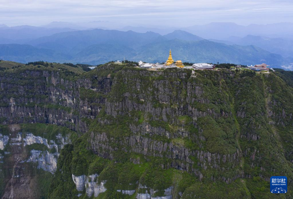 峨眉山景区金顶和万佛顶(6月5日摄,无人机照片)。