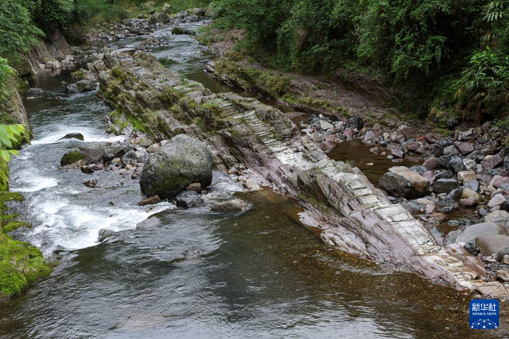 峨眉山景区龙门洞峨眉河中的地质景观“石船”(6月5日摄)。