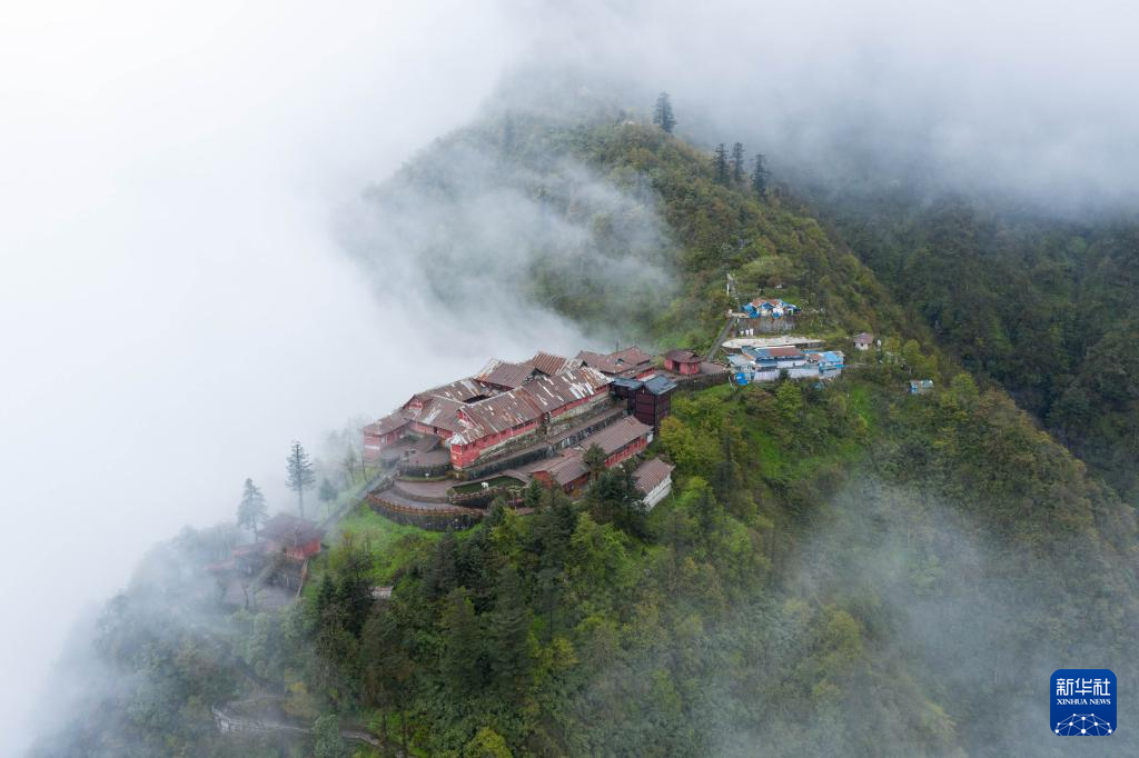 峨眉山景区洗象池(4月15日摄,无人机照片)。