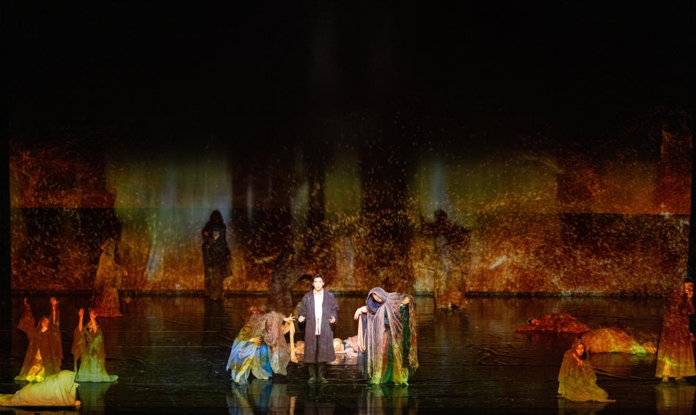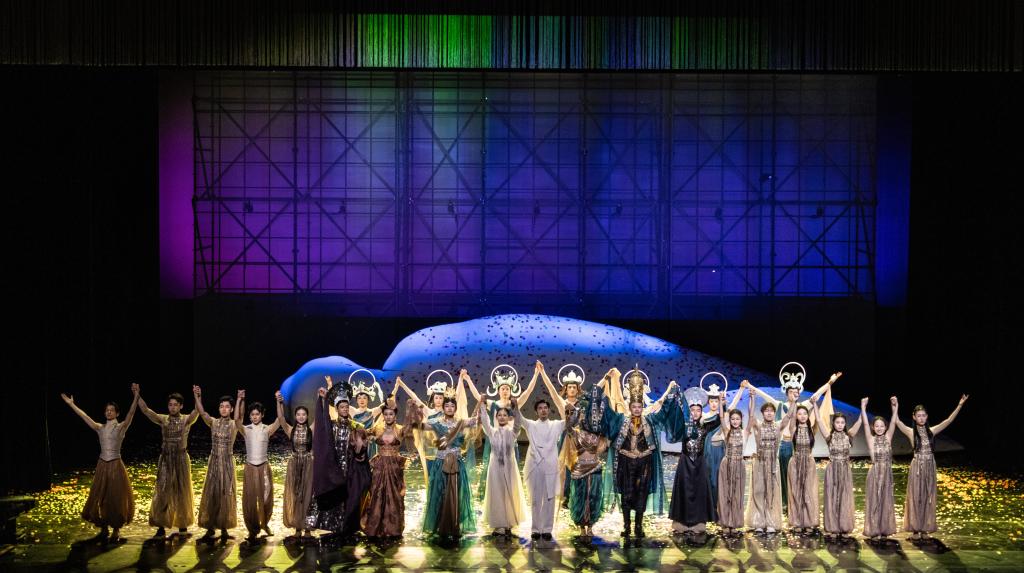 4月25日在北京保利剧院拍摄的音乐剧《飞天》的演出现场。新华社发(中国东方演艺集团供图)