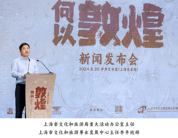 发布会现场,上海市文化和旅游局重大活动办公室主任、上海市文化和旅游事业发展中心主任李平致辞指出,“何以敦煌”敦煌艺术大展是2024年第35届上海旅游节重要文化项目,大展和上海旅游节功能平台强强联动,必将为广大市民和海内外游客打造一场高质量的文化旅游艺术盛宴!