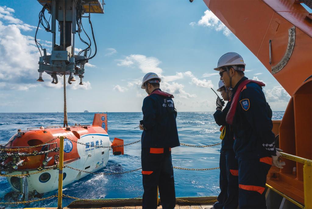这是为深海考古进行的“深海勇士”号载人深潜器布放(资料照片)。新华社发(国家文物局供图)