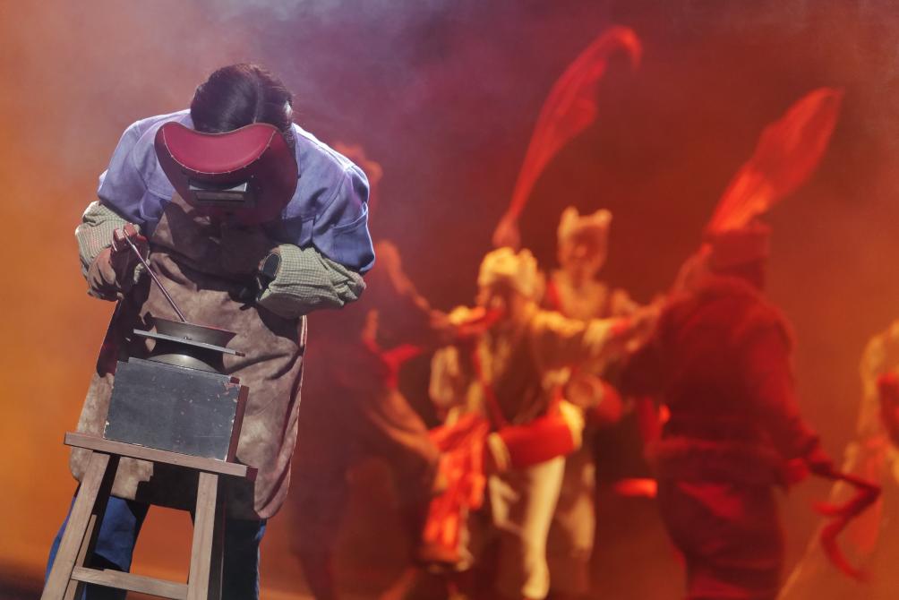 导演黄定山介绍,剧中现代工业风格的舞美力求让观众仿佛置身于真实的焊接车间,亲身感受工人们的坚守、奋斗和创新;安塞腰鼓和陕西信天游等传统民俗元素,力求让舞台充满浓郁的乡土气息。