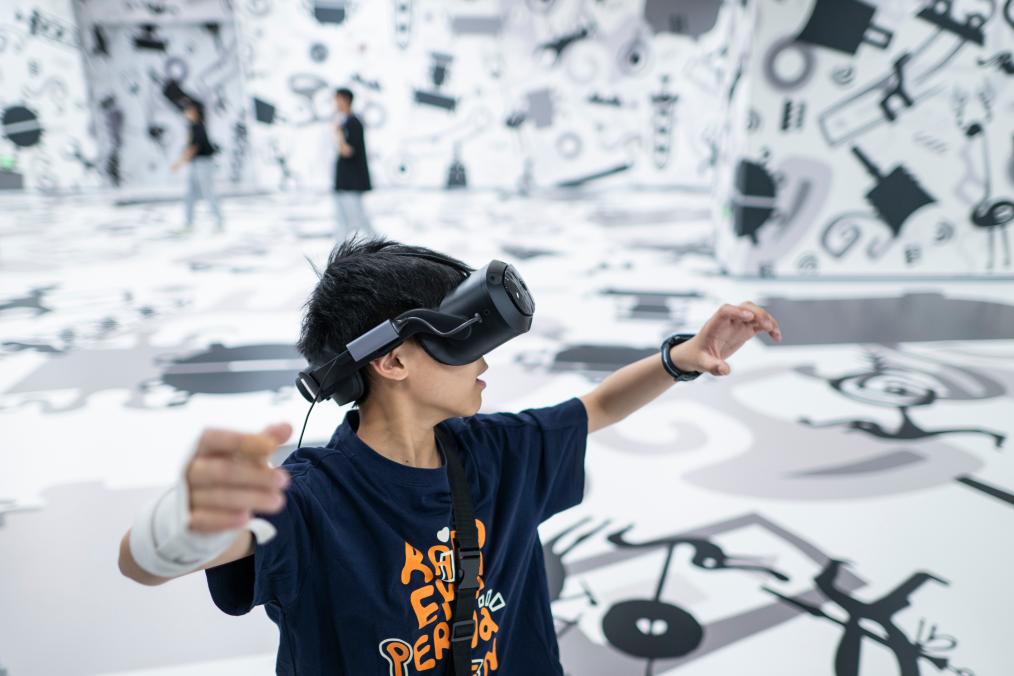 走进湖北省博物馆VR剧场的1000平方米展厅,观众戴上VR头显后,瞬间“穿越”来到2000多年前的中国青铜时代——铜联禁大壶底部的扛鼎小兽变身“导游”,引领观众去探索历史的细节;曾侯乙的“宫殿”里,编钟与编磬、鼓、琴、瑟、笙等乐器共同演奏,宛若一场八音齐备的古代音乐会。