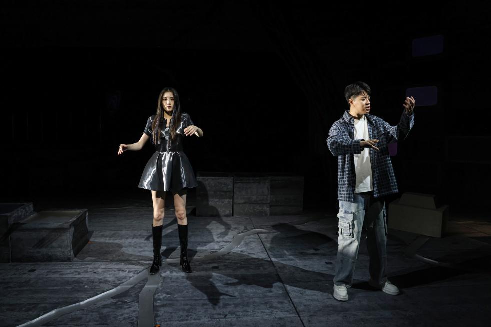 导演杨佳音说,作品融合表现性与象征性,以科技元素在舞台上搭建出一个看似粗粝的“赛博空间”,让剧中人通过一次次的“系统重启”,愈发接近自我潜藏的真相,呈现一段情感旧事。