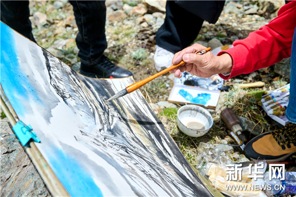 6月17日,“文化西藏 天上画卷”高原高峰艺术家西藏行写生活动走进廓琼岗日冰川。唐天源、何加林、敬廷尧、丁杰、顾平、梁明、陈琪等知名艺术家现场写生,用画笔描绘西藏之美。