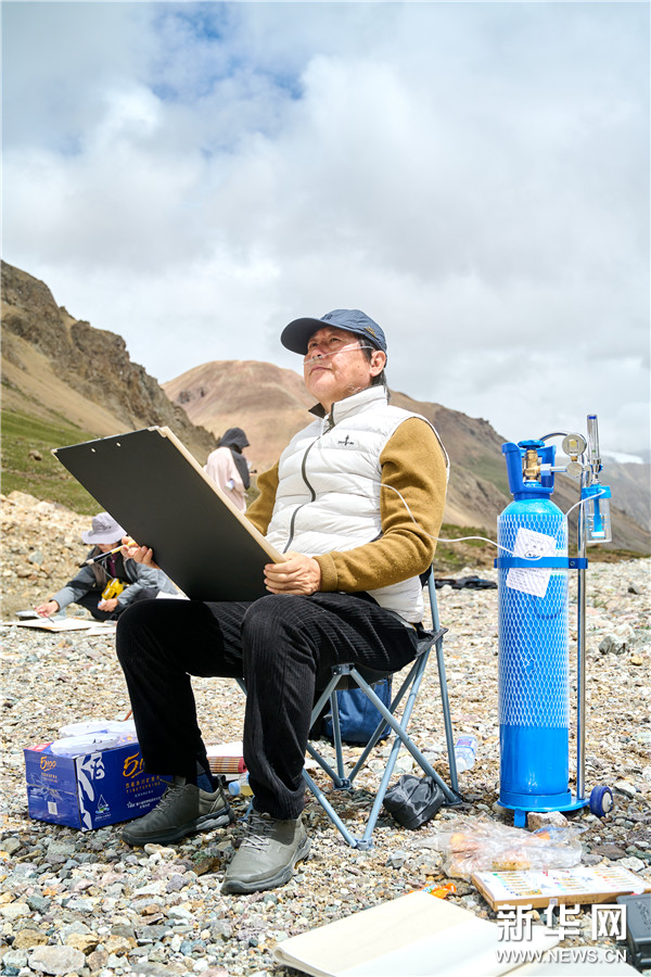 中国文艺志愿者协会副主席、中国美术家协会理事、中国国家画院美术馆原馆长何加林在廓琼岗日冰川写生