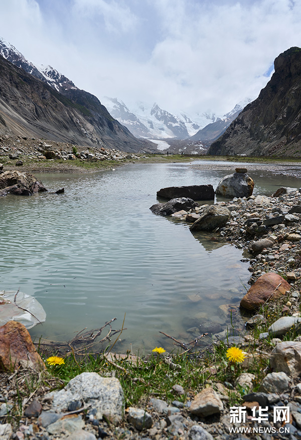 中央美术学院中国画与书法学院原院长、中国国家画院研究员岳黔山在祥格拉冰川现场写生