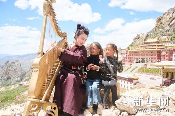 中央民族乐团著名箜篌演奏家吴琳为藏族小朋友演奏箜篌