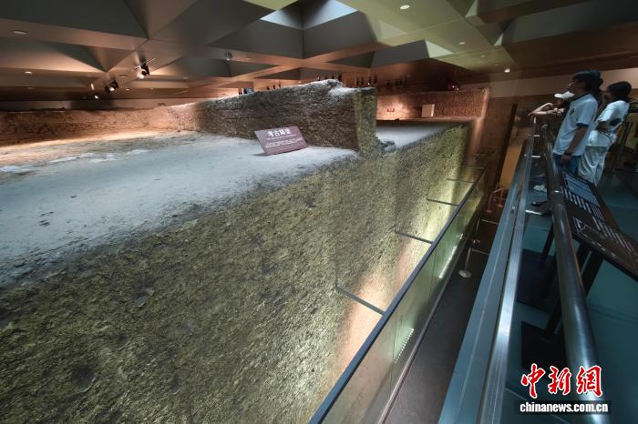 7月30日,江苏南京,观众在六朝博物馆内参观展陈的六朝建康城夯土墙遗迹。正值暑期,南京文博场馆迎来参观热潮。中新社记者 泱波 摄