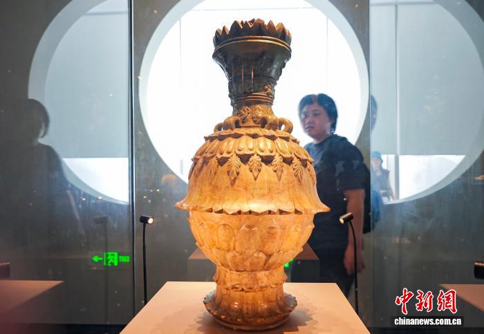 7月30日,江苏南京,观众在六朝博物馆内参观展陈的青瓷莲花尊。正值暑期,南京文博场馆迎来参观热潮。中新社记者 泱波 摄