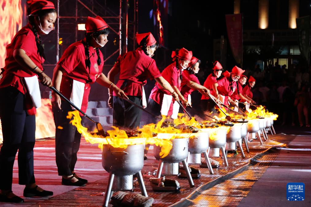 8月2日,厨师在美食节开幕式现场烹制炒拨拉。