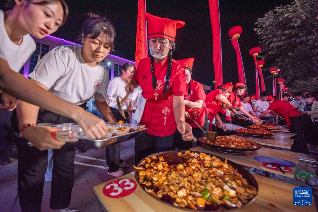 8月2日晚,甘肃省张掖市山丹县第三届炒拨拉美食节开幕。炒拨拉是山丹县的代表性地方小吃,用羊内脏搭配洋葱、青红椒等,在铸铁鏊子上用柴火或煤炭猛火爆炒而成,是张掖市级非遗项目。美食节期间还将举行非遗展演、特产展销、文旅推介等活动。