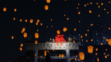 2月10日,在重庆市磁器口古镇,千盏孔明灯齐放夜空。