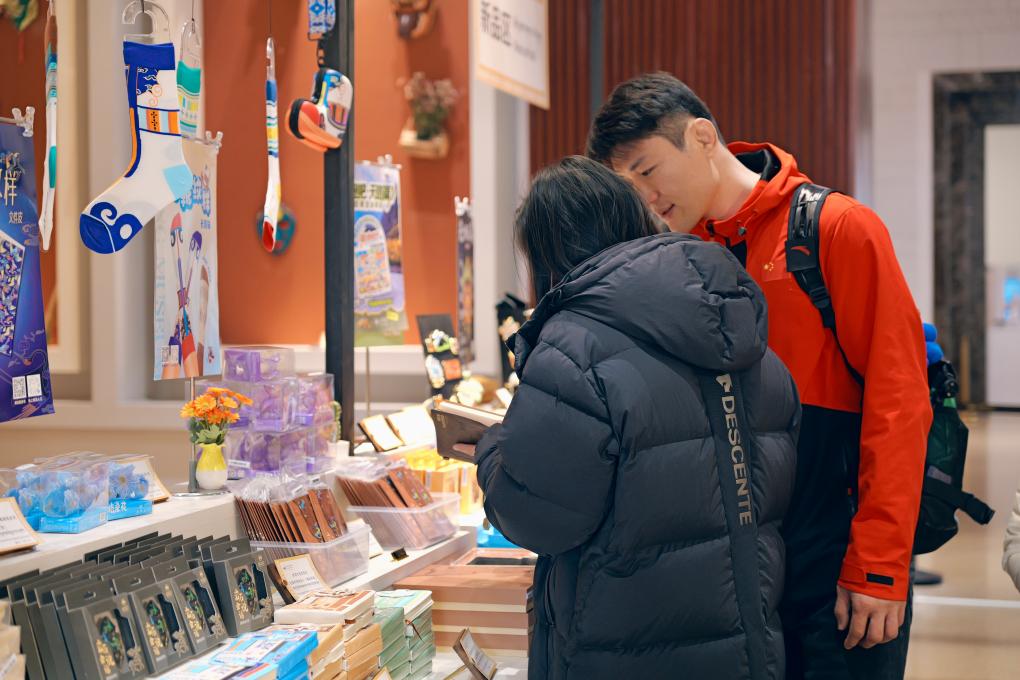 游客在西藏博物馆挑选文创产品。新华社记者 周昱龙 摄