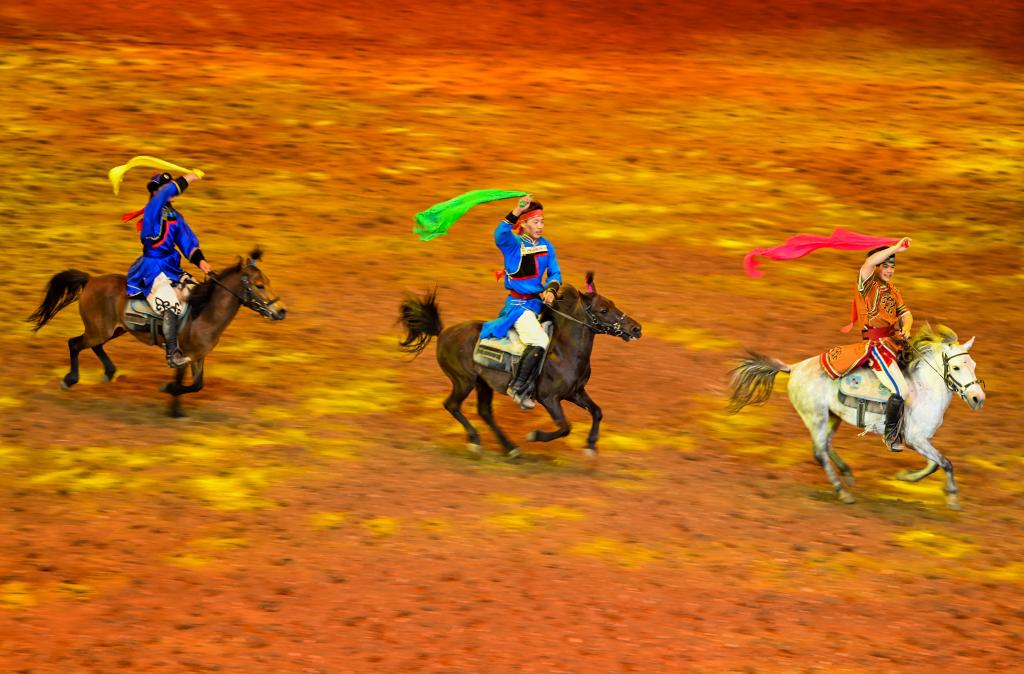 这是演员在马舞剧《千古马颂》中表演。新华社记者 连振 摄