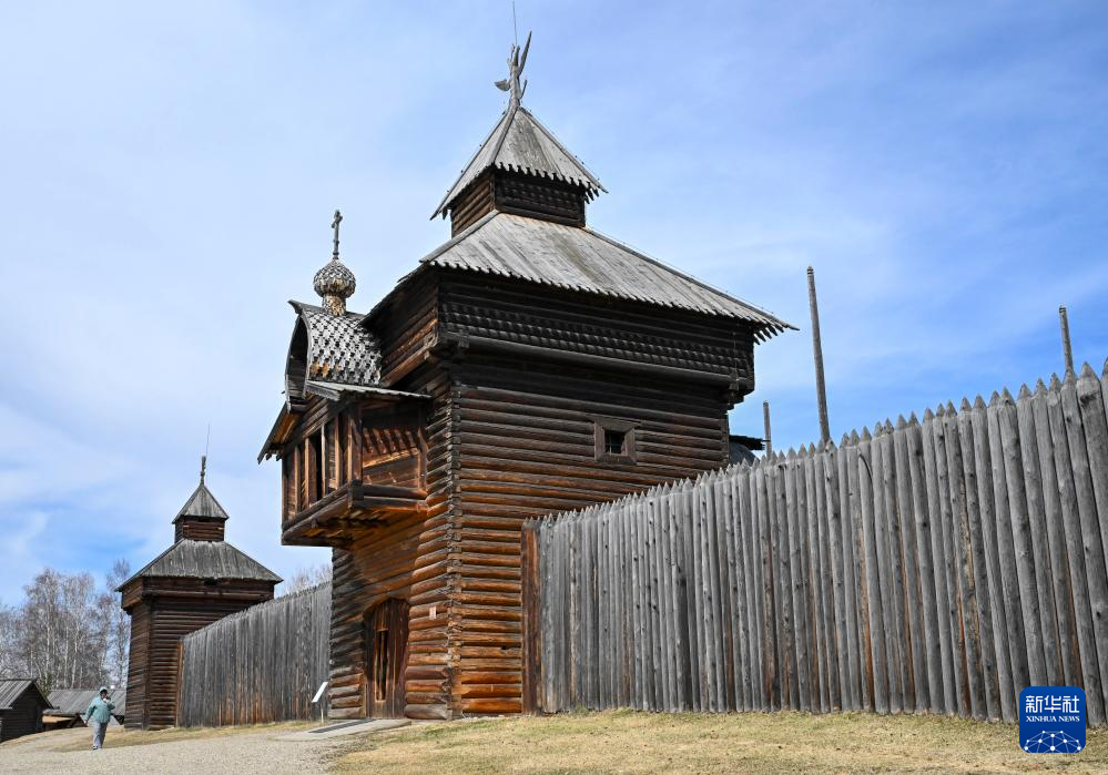 4月28日,游客在俄罗斯伊尔库茨克民俗建筑博物馆内参观。