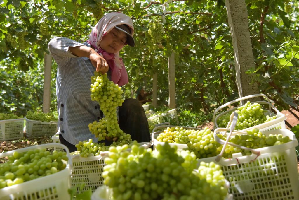 吐鲁番的果农在采摘葡萄。新华社记者 丁磊 摄
