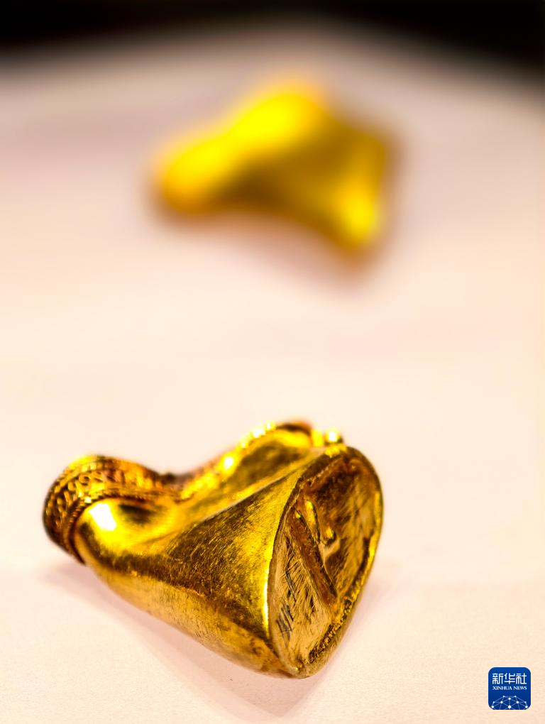 这是现场展出的2000年前的麟趾金(4月29日摄)。