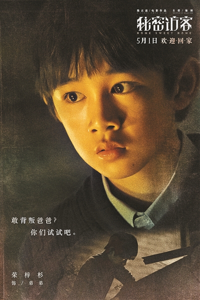 《秘密访客》中的家充满着令人汗毛直立的不安。一家四口与秘密访客之间充满了相互制衡的诡异感。“父亲”郭富城庄严肃穆,维持着这个家的表面和谐和“完美”。“访客”段奕宏在“父亲”郭富城面前惶恐不安,而一系列怪事也接连发生,车祸、威胁,以及那双看不见的眼睛随时观察着这个家庭。“姐姐”张子枫眼神冰冷态度冷漠,心事重重似有许多难言之隐。“弟弟”荣梓杉则小心翼翼,观察着每一个家庭成员的一举一动。影片故事对于年幼的荣梓杉来说,显然不是很好理解,陈正道说自己当时有些忐忑,担心荣梓杉能否进入角色,但是荣梓杉和郭富城的一场戏让陈正道放下心来。那是吃饭时的一场戏,郭富城喂荣梓杉吃虾,这个喂食的举动是郭富城即兴加进去的,陈正道觉得特别满意,“郭先生说我看到荣梓杉那张脸就特别想喂他,他说他合作过很多很好的演员,上一次让他觉得对戏的时候有这么真实表演的感觉,是《父子》里面演他儿子的那个孩子。”