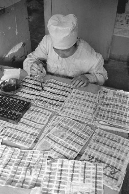 1993年5月10日是北京开放粮油价格的第一天,北京市朝阳区西石门粮店的店员在登记注销最后一批粮票。新华社记者 刘卫兵 摄
