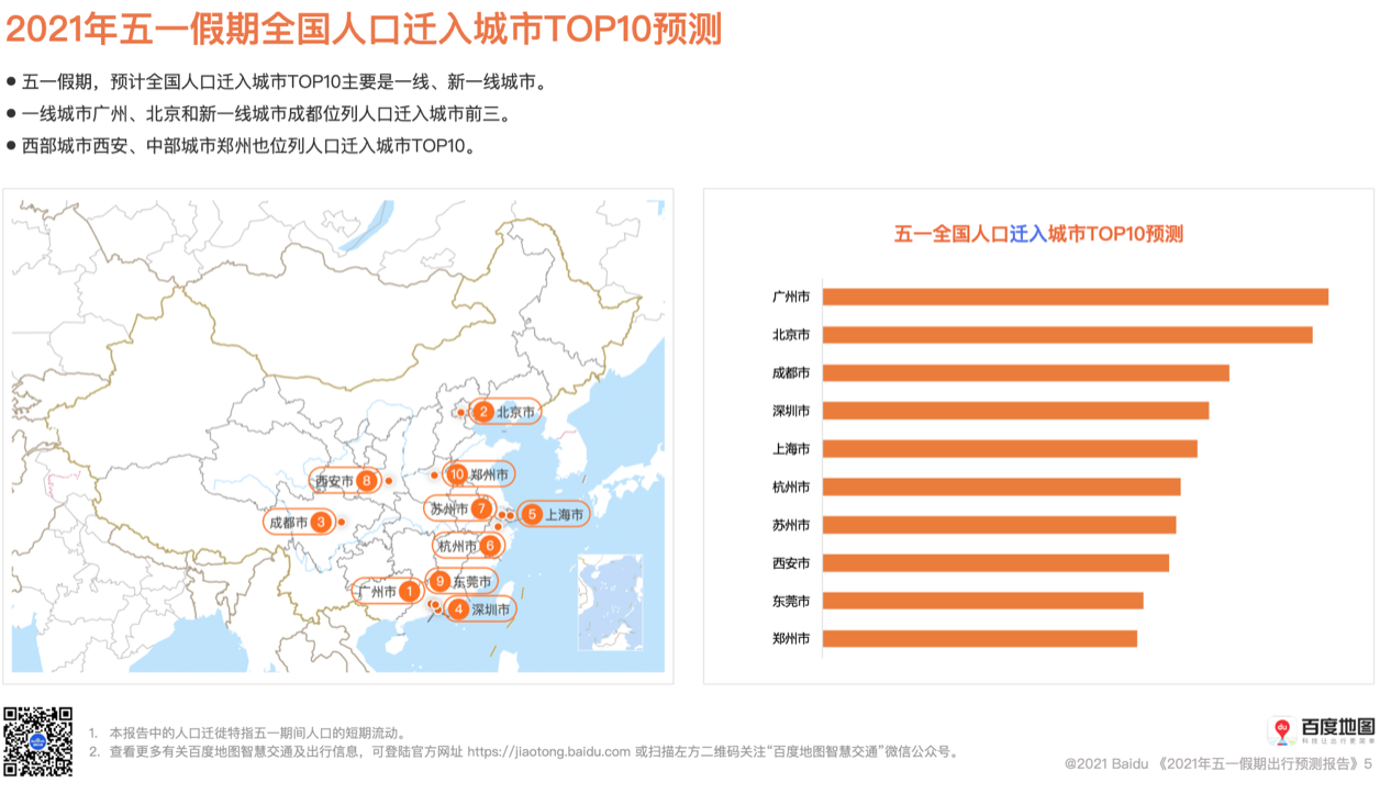 预计全国人口迁入城市TOP10主要是一线、新一线城市。
