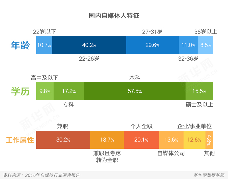 编辑:肖潇 设计:殷哲伦 2017-04-12 08:00:06 来源: 新华网随着近几年微博、微信等新媒体的快速发展,强调个人化的“自媒体”也成为了家喻户晓的词汇。然而与此同时,为了增加流量、提高收益,“标题党”、抄袭等问题也频频遭到曝光。国内自媒体发展的现状究竟如何?想运营自媒体,有哪些值得关注的事?