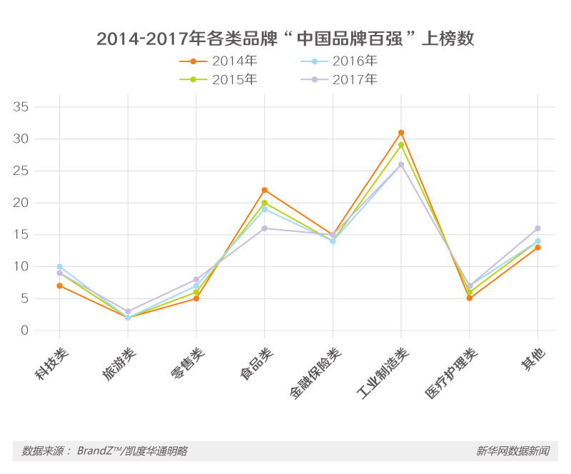 透过2014至2017年的中国品牌百强排行榜,我们不难发现:中国的供需结构正在升级,在供给侧,食品、工业制造行业在供给结构中占比明显下降,而科技、旅游、零售、医疗护理行业在供给结构中所占比例显著上升;在需求侧,食品消费比例在下降,医疗护理消费比例在提升。