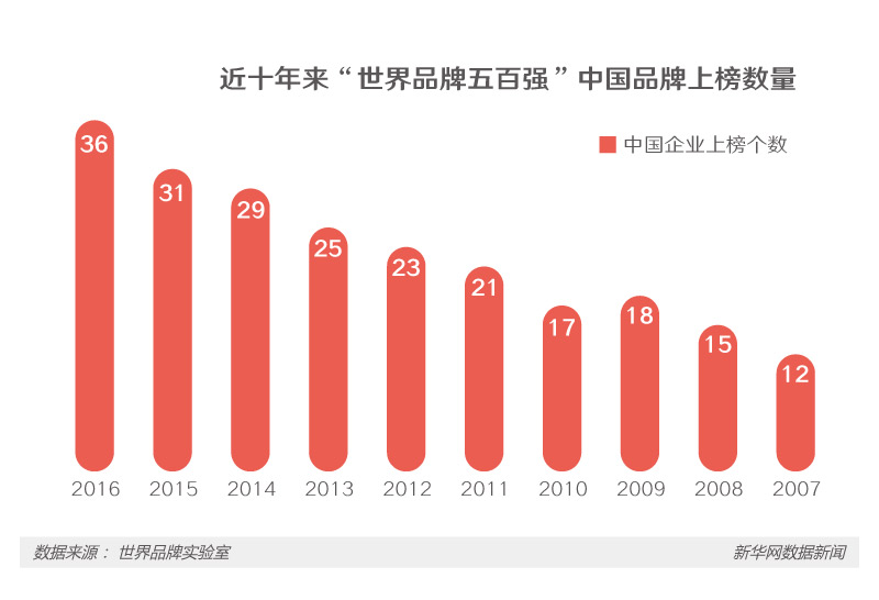 随着创新驱动发展战略的推动,中国正在从制造大国转型为创造大国,越来越多中国品牌走出国门,从能源、电信、制造业到传媒、互联网行业,世界品牌五百强中的“中国队”也正在迅速壮大、崛起。
