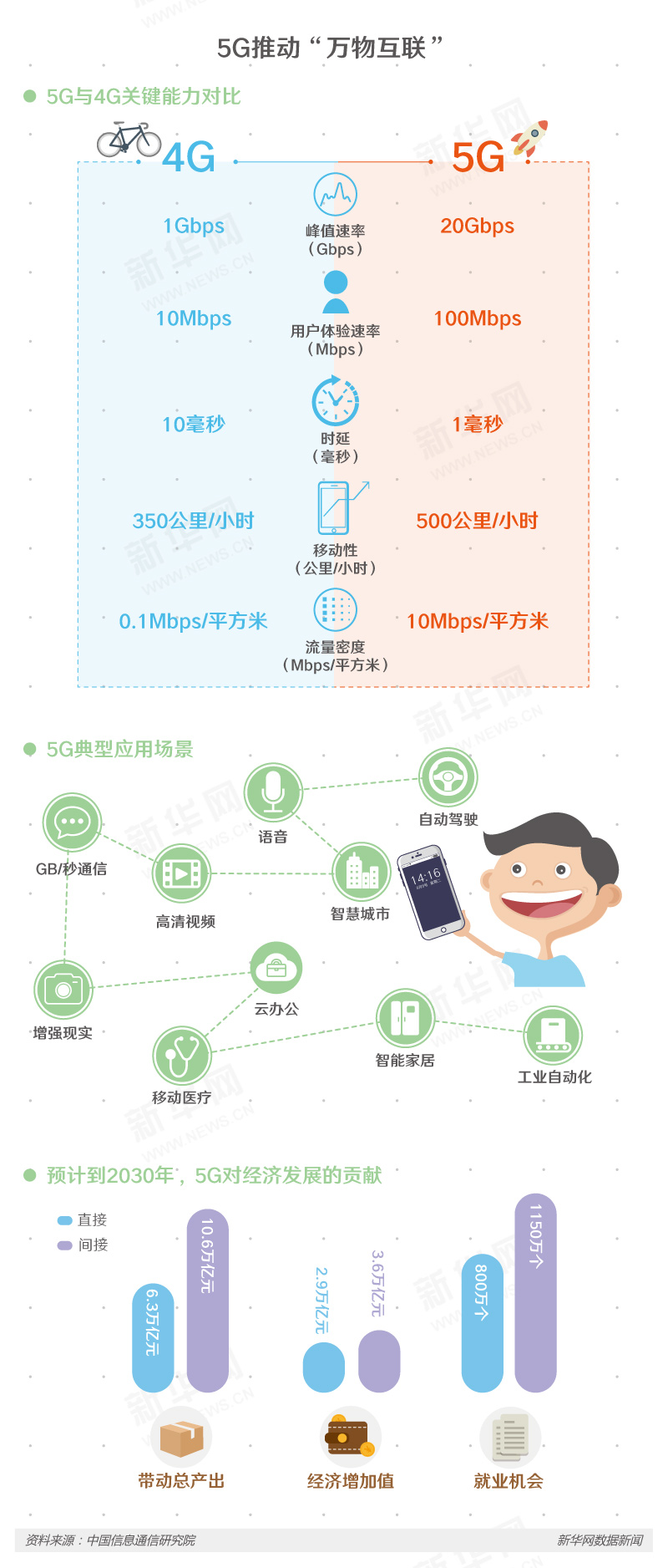 今年6月,中国信息通信研究院发布了《5G经济社会影响白皮书》,提出5G网络将提供至少十倍于4G的峰值速率、毫秒级的传输时延和千亿级的连接能力,开启万物广泛互联、人机深度交互的新时代。5G将全面构筑经济社会数字化转型的关键基础设施,从线上到线下、从消费到生产,从平台到生态,推动我国数字经济发展迈上新台阶。