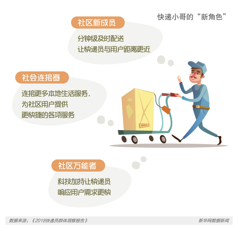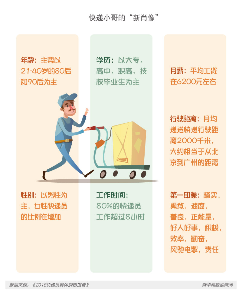 编辑:闫曦丹 潘子荻 设计:姜子涵 2018-08-21 14:23:50 来源: 新华网从服装零食到电器家具,从厨卫用品到水果鲜蔬,每天将这些生活用品送到你手里的,更多时候不是亲朋好友,而是快递小哥。从2017年第二季度开始,中国快递业进入单日快递亿件时代,对于许多独在异乡打拼的年轻人来说,快递小哥已成为 “最熟悉的陌生人”,他知道你爱买什么东西,喜欢吃什么口味的外卖。